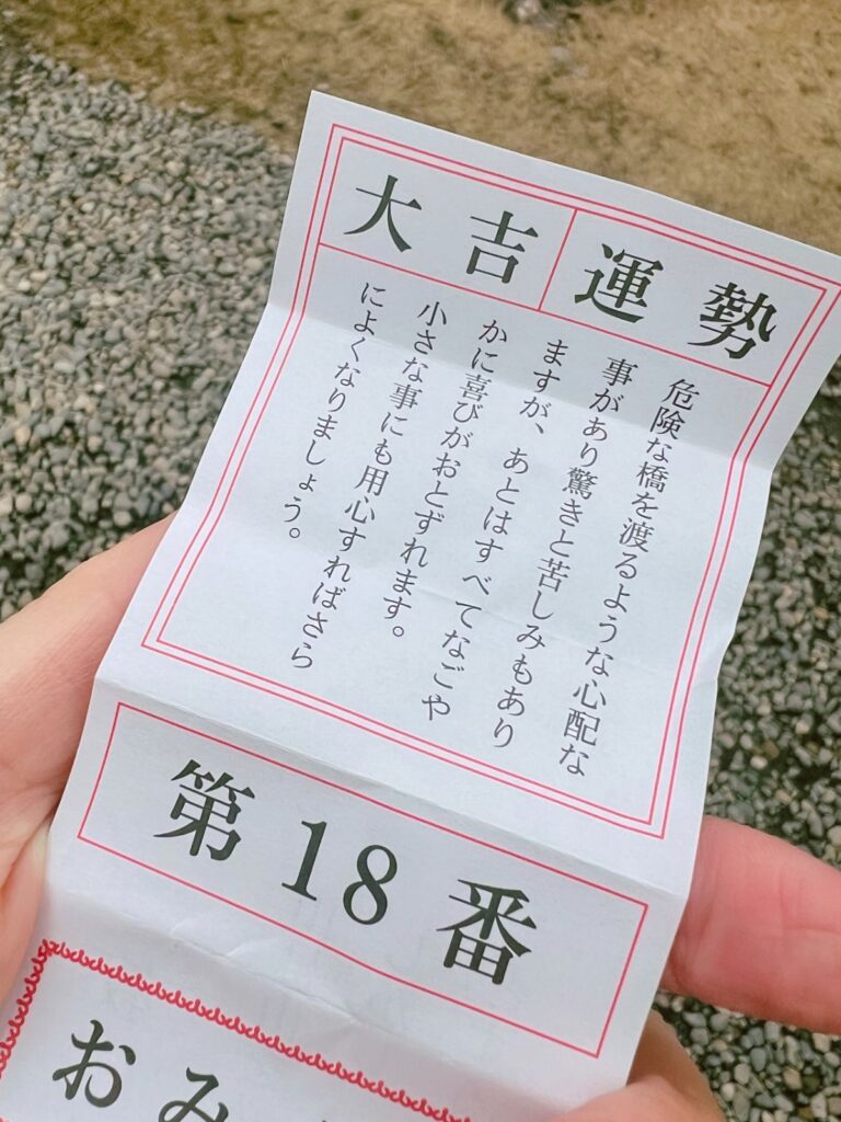 参拝後におみくじを引いて大吉だ〜と喜んだのも束の間、なんだか大吉だとは思えないほど厳しいことが並んでいます!!